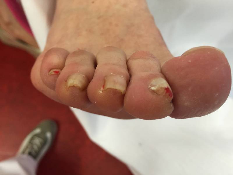 - Laat bij voorkeur uw nagels knippen door een medisch voetzorgverlener. Knipt u toch zelf, dan knipt u de nagels niet te kort . Haal daarna even een vijl langs de nagels.